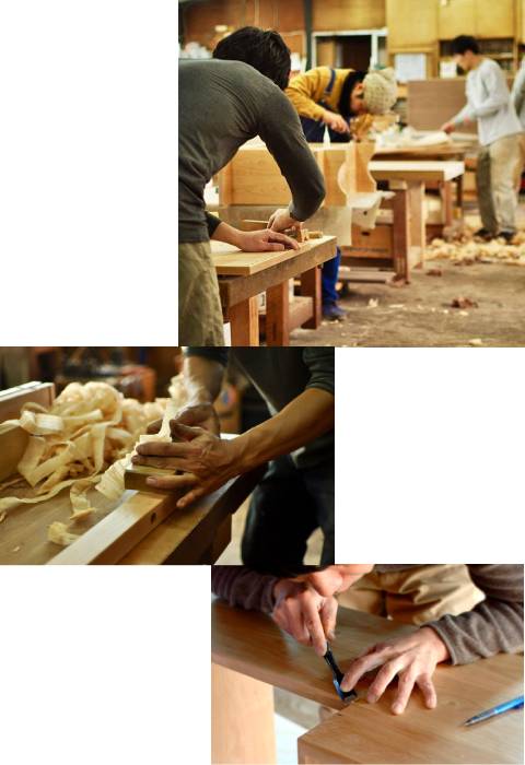 優れた家具づくりには、つくり手自身が「つくるよろこび」を感じることが何よりも大切と考える同社では、効率を追求した分業化を採用せず、最初から最後まで責任を持って一人の担当者が製作する体制をとっています。