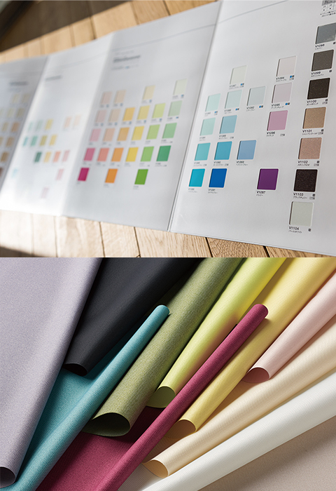 ニチベイが展開するブラインドの色柄は、たて型・よこ型でそれぞれ200以上、ロールスクリーンで300以上。