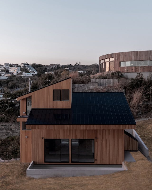 モノクローム社のRoof-1 は、建築で使われるには「機能性を損なうことなく意匠性も追求することが絶対に不可欠」との想いから誕生した、機能性と意匠性を両立させた太陽光パネル一体型屋根材であり、まさに「エネルギーをつくる屋根」なのです。