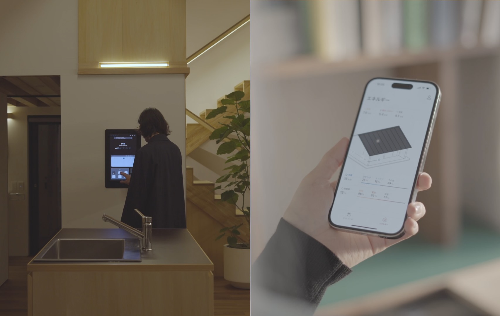 Roof-1の発電状況はもちろん、照明のON・OFFやカーテンの開閉・室内温度管理などを壁付けモニターとスマホで操作できる、家族全体のコントロールタワーとしての役割を果たすことができる画期的な製品です。