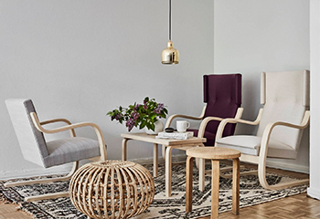 アメリカでは、通称「フィンチェア」とよばれ、開発当時よりフィンランドを代表する国民的な椅子として広く親しまれてきました。あらゆるシーン、シチュエーションに柔軟に対応することから、70年以上を経た今でも、学校をはじめ、病院や市民ホール、駅舎など、フィンランドの公共施設を中心に、人々の暮らしに寄り添うように使われています。