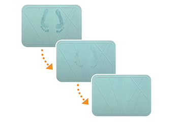 珪藻土マットとの決定的な違いは、その抜群の吸水力です。けい酸カルシウムボードの特長である無数の“細孔”(小さい穴)が、お風呂上がりの水滴をあっという間に吸い込み、マットの表面はいつもサラサラ。大人数の家族がお風呂に入っても、濡れたマットの気持ち悪さを感じることなく、最後の一人まで快適な湯上がりを実感していただけます