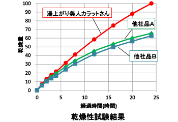 乾燥性試験結果:約25分後には、ほぼ100%の乾き具合という結果に
