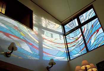 光の芸術であるステンドグラスは、季節や朝夕で移ろう太陽光によってその表情を刻々と変えていきます。 その変化を楽しむためには「本当は、住宅こそステンドグラスにとって最高の舞台なのです」と臼井さんは語ります。