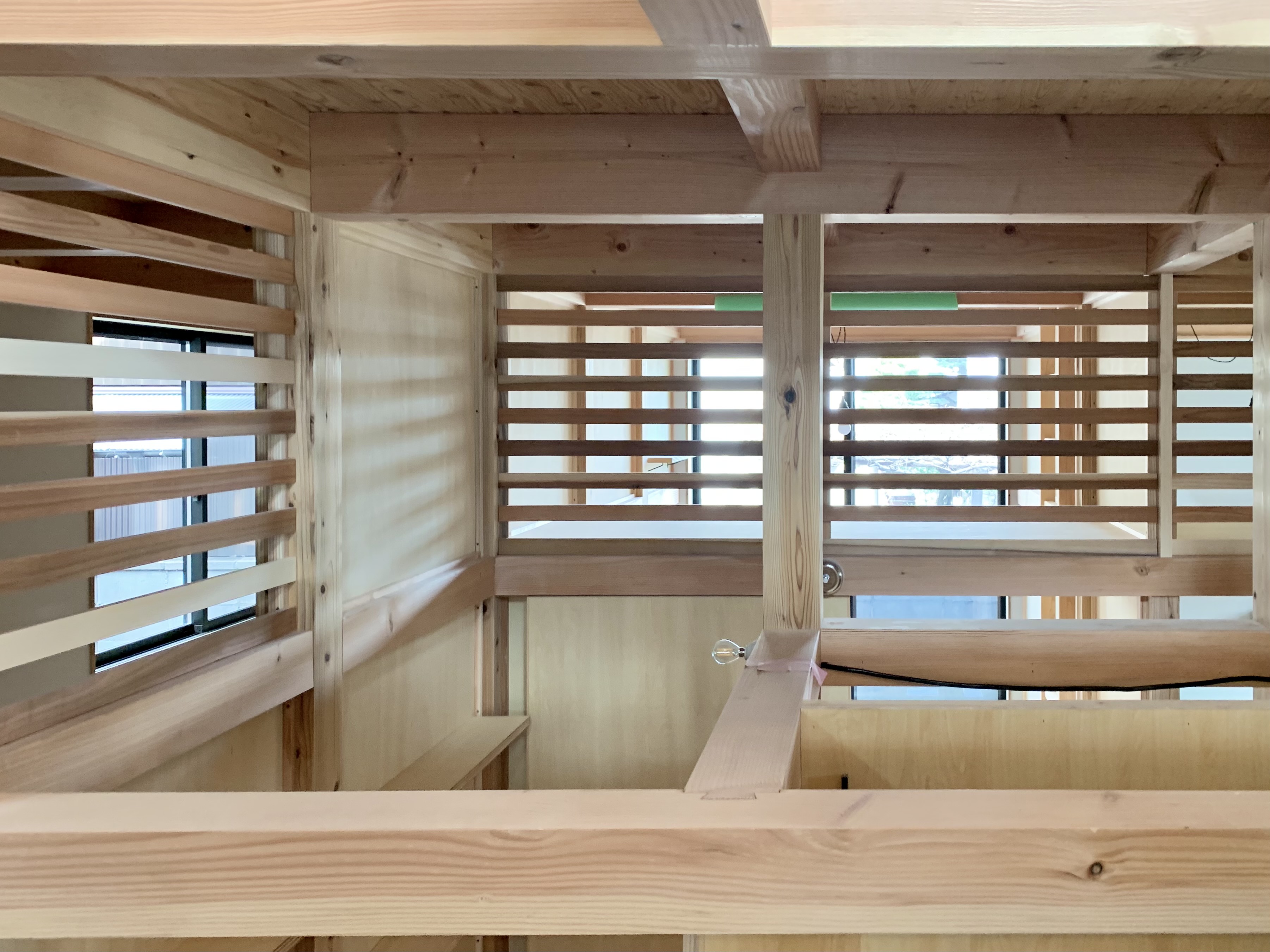 ロフトの壁はルーバー状にデザインしており、1階全体の空気が循環することでエアコン2台で十分に賄え、効率的な空調管理ができます。