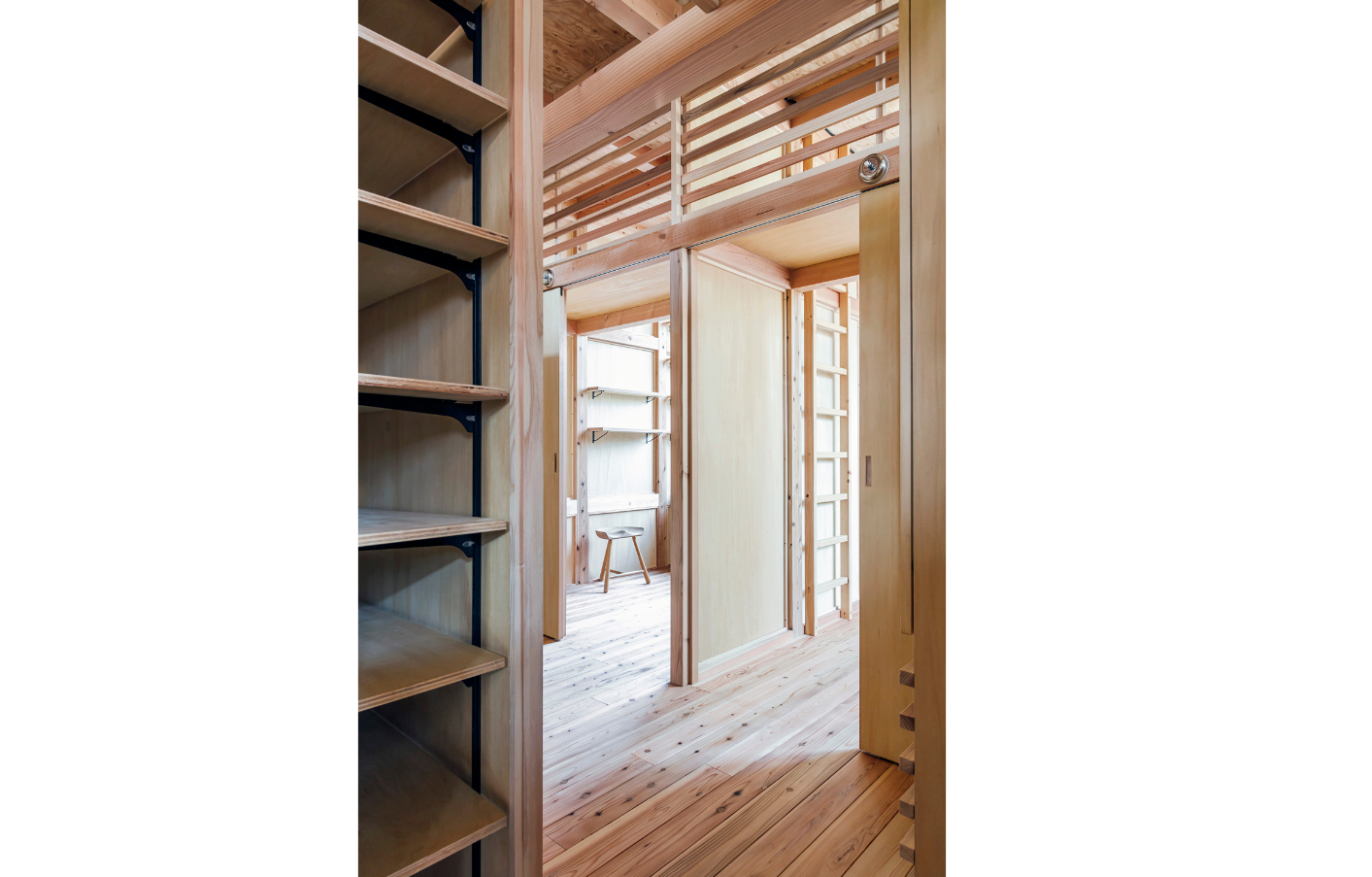 この子ども部屋の最大の特徴は、将来を見据えたフレキシブルな設計です。子どもたちが独立した際は、各部屋の間仕切りとなる壁が簡単に取り外せるようにしています。壁部分はビスで固定されているため、お施主様自身で取り外しが可能です。壁を取り外すと、1階全体がワンルームの広い空間として使えるようになり、その時々の家族のライフスタイルに合わせて柔軟に対応できます。