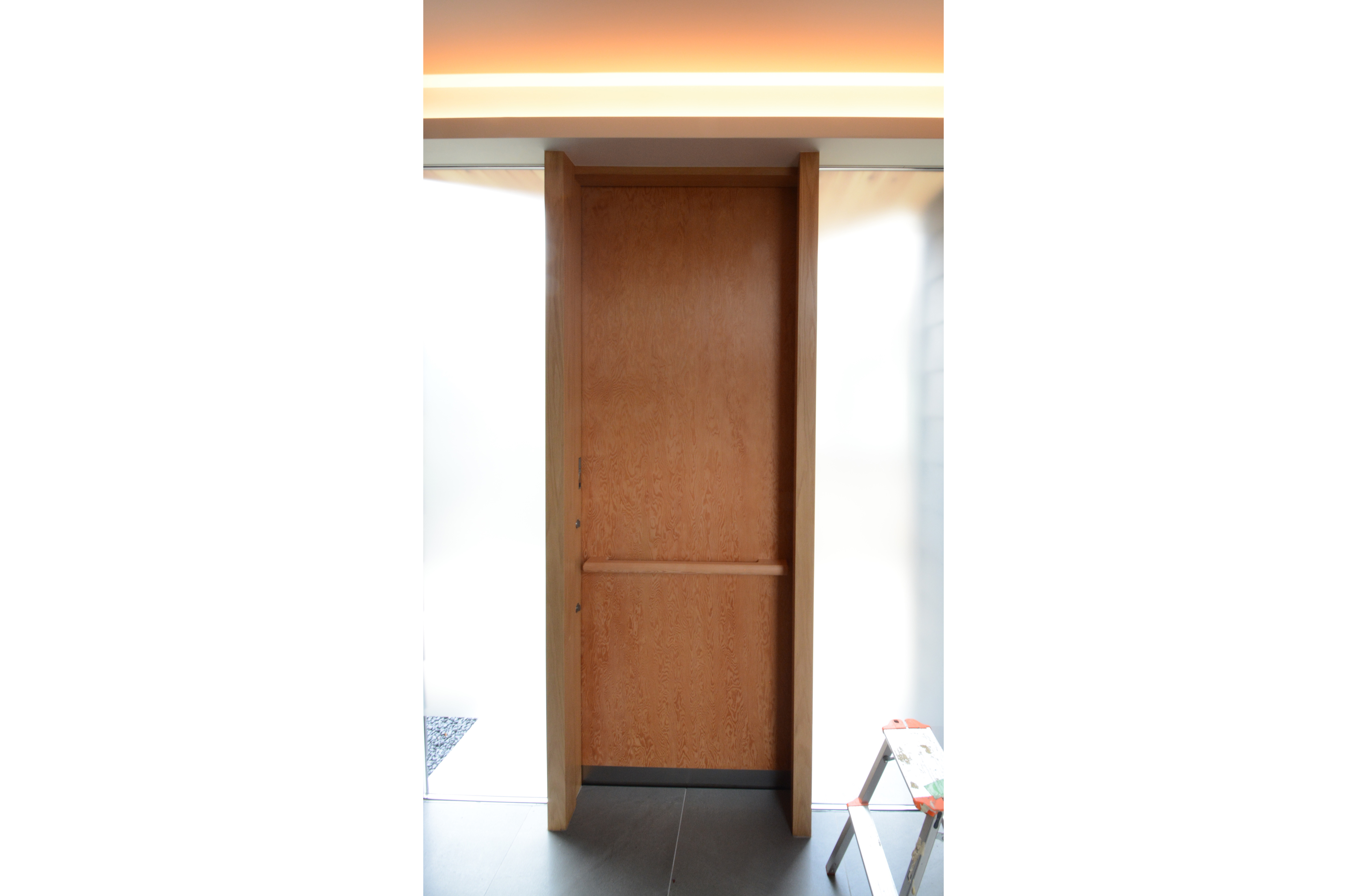 日頃、当たり前のようにドアの正面にある鍵穴を見えないものとし、美観と防犯面を強化したい、そんな発想からこのドアは生まれました。