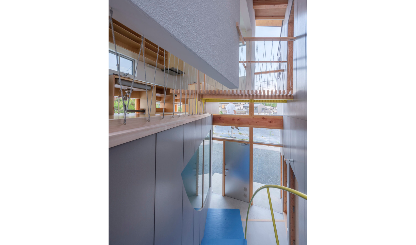 さらに、住宅全体をぐるりと回れるようなブリッジを掛け、回遊性を持たせることで、子どもたちが家の中をぐるぐる走り回れるので、狭さを感じさせません。