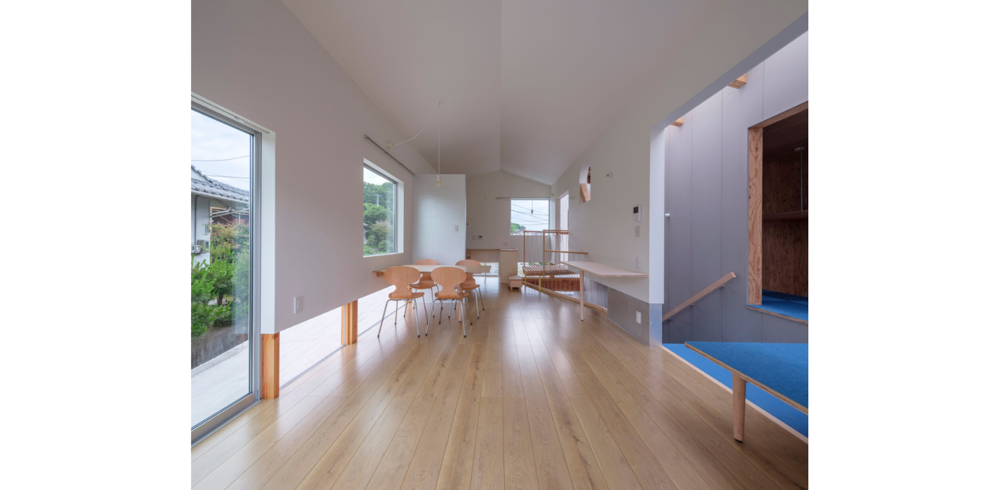新たな土地に移り住む家族が周囲との関係を育めること、また高騰する材料費に対応するため、コンパクトでありながらも豊かな空間の広がりを感じられる住まいを目指しました。
