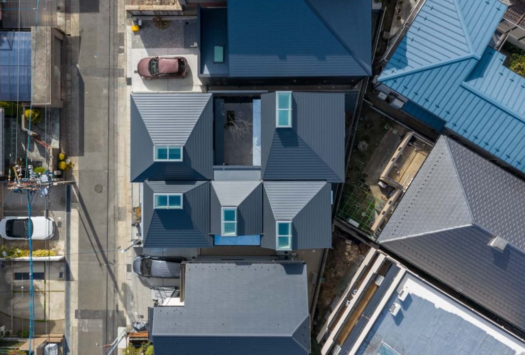 縦と横の奥行きと、内部と外部の空間が重なり合うレイヤー構造により、限られた敷地に広がる豊かな住まいとなりました。