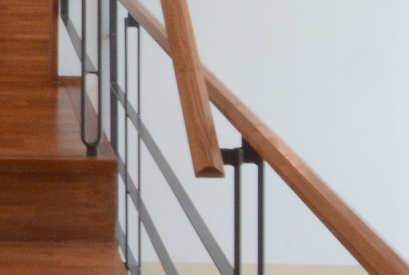 プロの住宅レシピ シャープなデザインと握りやすさ、木と鉄のハイブリッド手すり