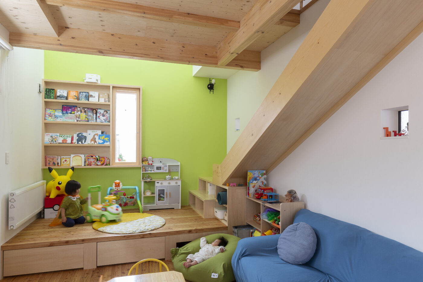 キッチンに立ちながら庭が眺められ、リビングにいるお子さんの様子も伺えるL型キッチンを採用しています。