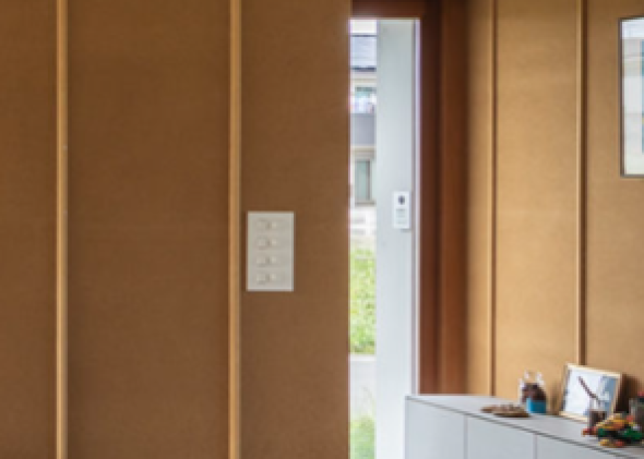 空調では、オーダーメイドのカーテンを設けて、空調区画をつくることで対応しました。このカーテンは袋状になっていて、布と布の間に空気層を作ります。この空気層が隣の部屋の温度を遮ります。上部はオーガンジー素材で光を通すため、圧迫感を感じることなく、空間も無駄なく使えます。