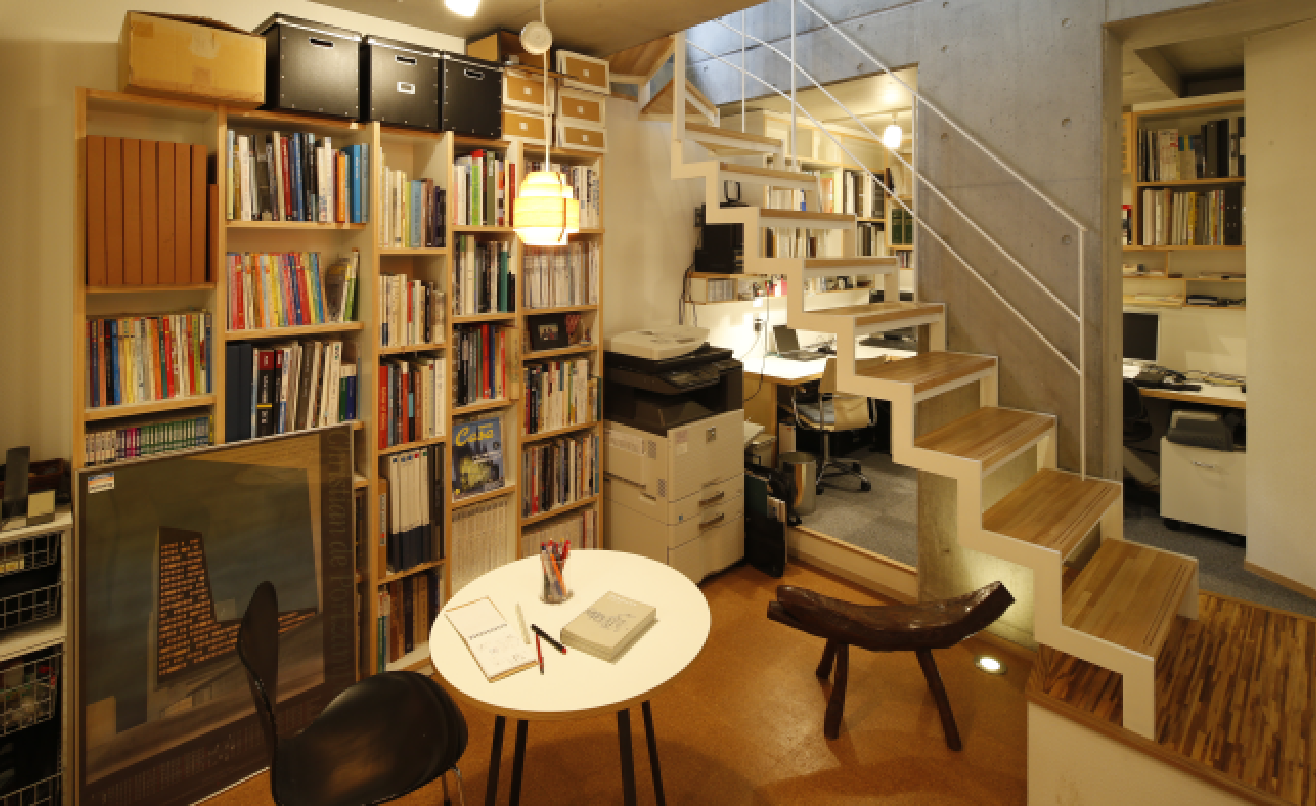 逆にフロアが離れていても視線と気配をつなぐ工夫も。夫婦の仕事部屋でもあるB1Fの明かりが上階からでも見えるように、1Fのリビングにフィックス窓をつけています。子育て時期はリビングでお祖母様と過ごしているお子様が、母を探してよくそこを覗き込んで、小さなガラス窓越しにコミュニケーションをとっていたという、思い出の詰まった心温まるアイデアです。