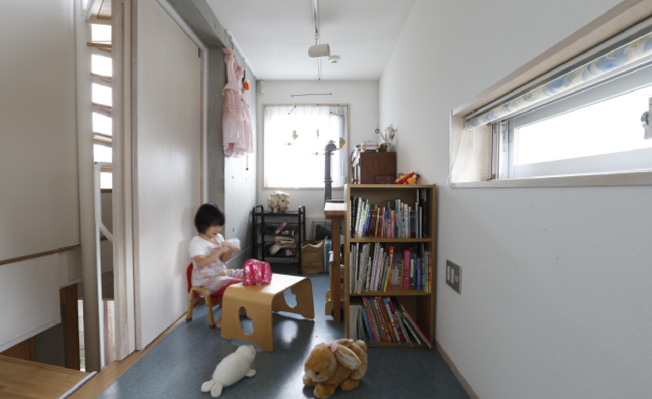 空間を共にしながらも程よい距離を保てるように考えられています。家族といえども、視線を気にせずに過ごせる空間のほうが快適であるとの考えから、どの部屋も壁がまっすぐのパッと開けた空間ではなく、少しズレを生じさせています。部屋の中に空間の起伏があり、「自分の視界から人が見えなくなる場所があることで一種の解放感が得られる」というのには納得しかありません。