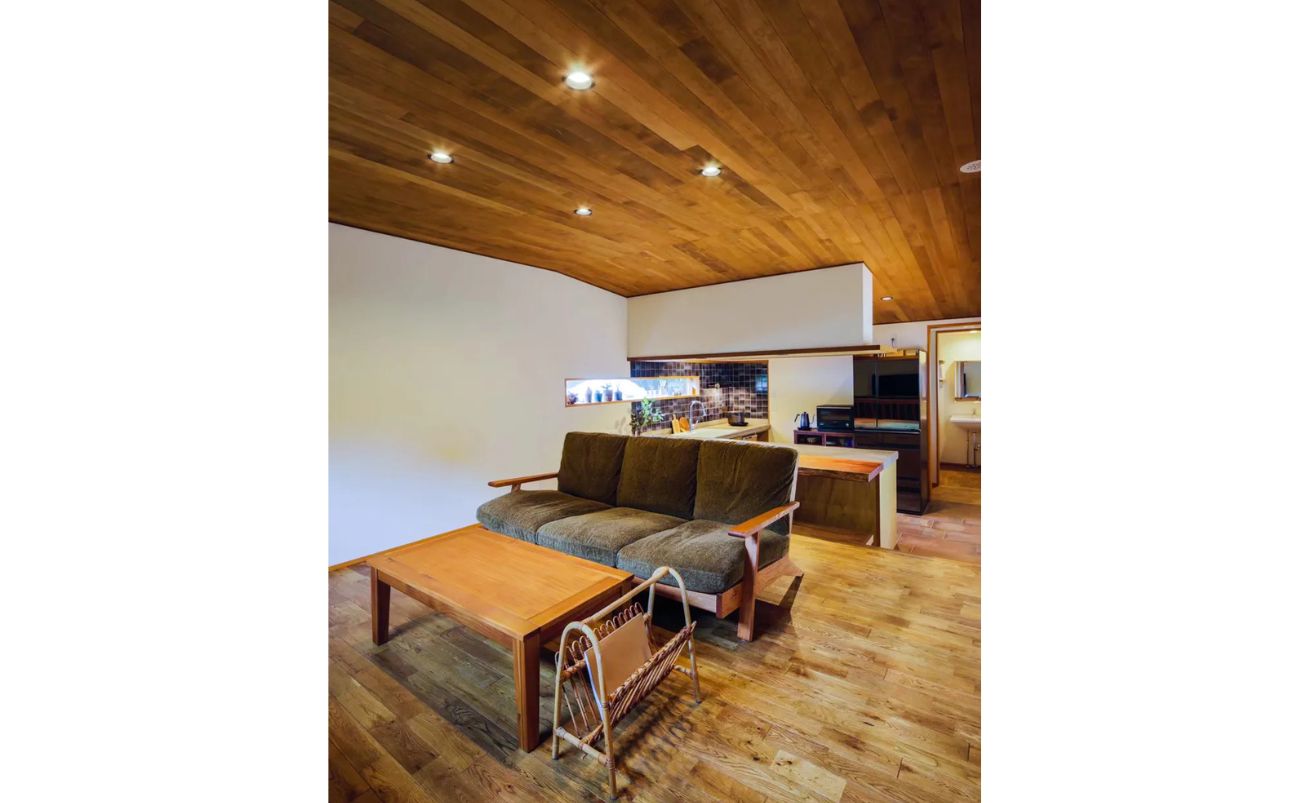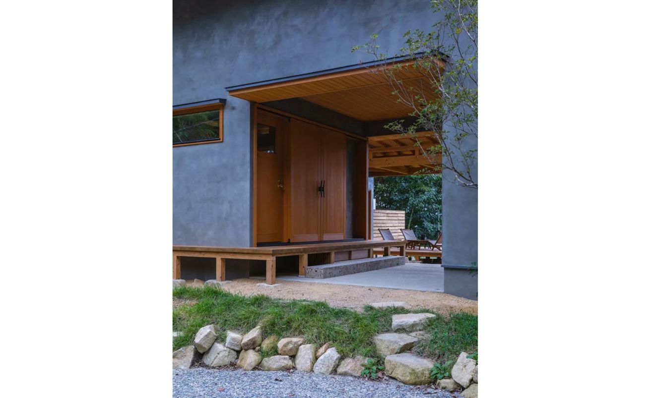 滋賀県に佇むこの住まいには、住宅街にありながらも周囲には豊かな自然が広がります。