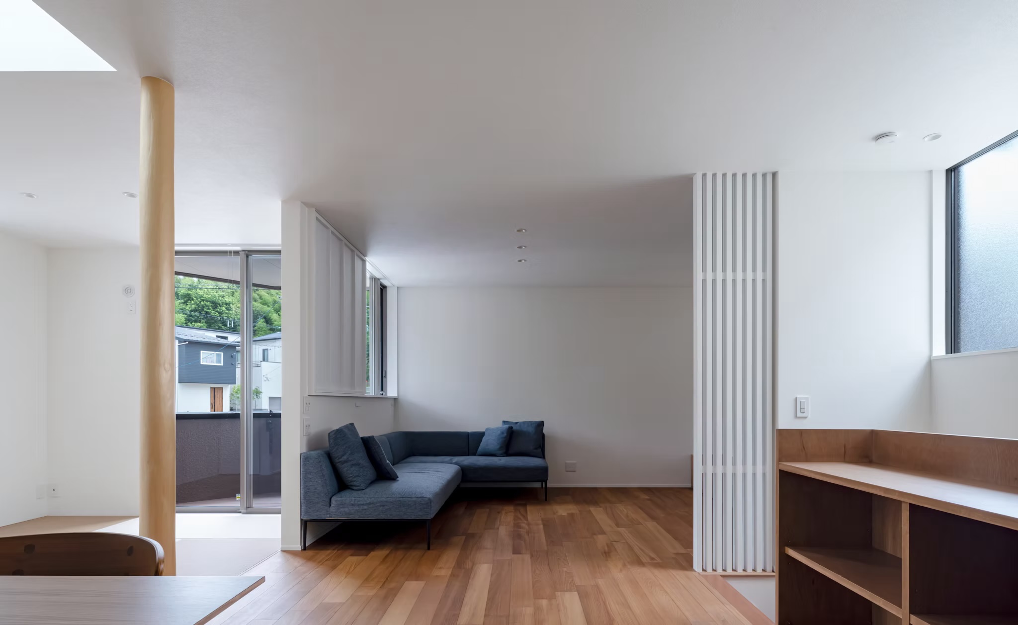 敷地の難点を活かし、家族がのびやかに暮らす住まいが完成しました。
