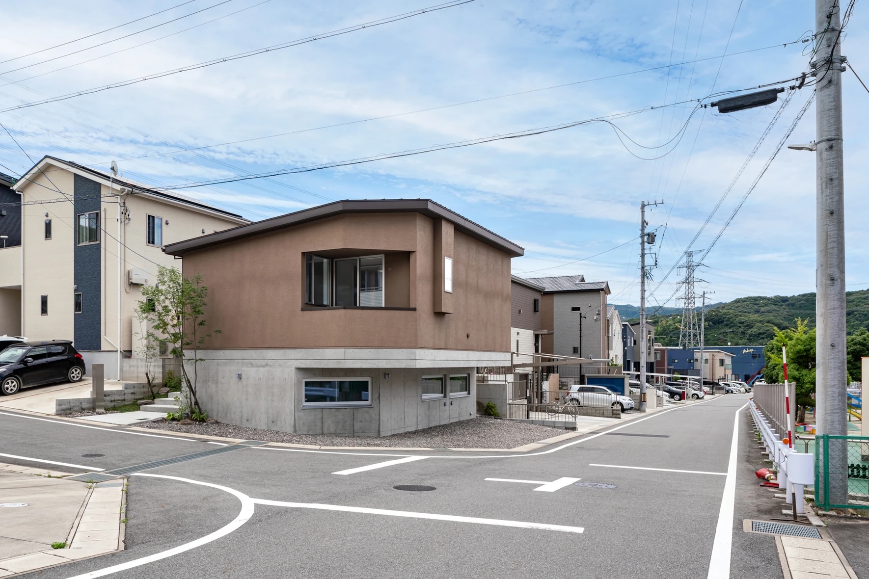 もともと傾斜地であったというこの敷地。高低差を解決するために土止めを使用せず、周囲の雰囲気にも溶け込む外観と住み心地も実現したアイデアが見られます。