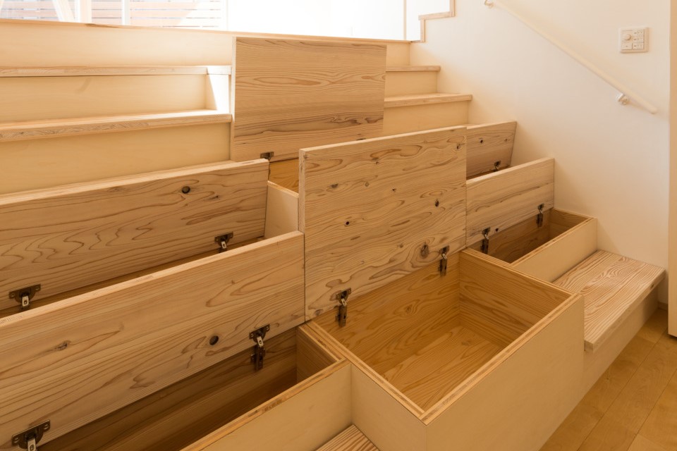 プロの住宅レシピ 段差がある変形地を活かした収納階段
