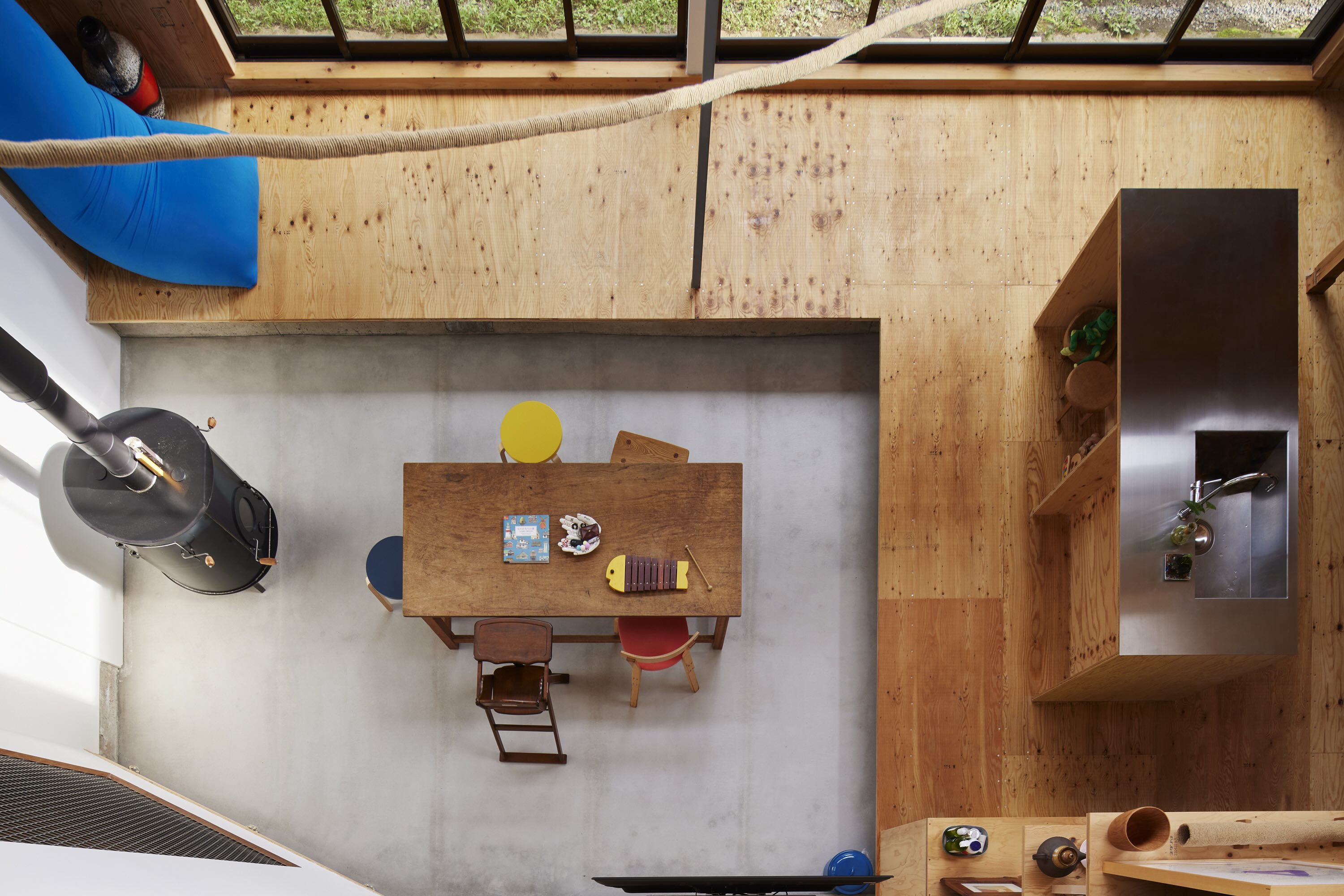 将来的には家族で様々な活動を行えるようにと、貸しギャラリーや登山客のためのゲストハウスにもなるような、自由に使えるニュートラルな空間を提案。