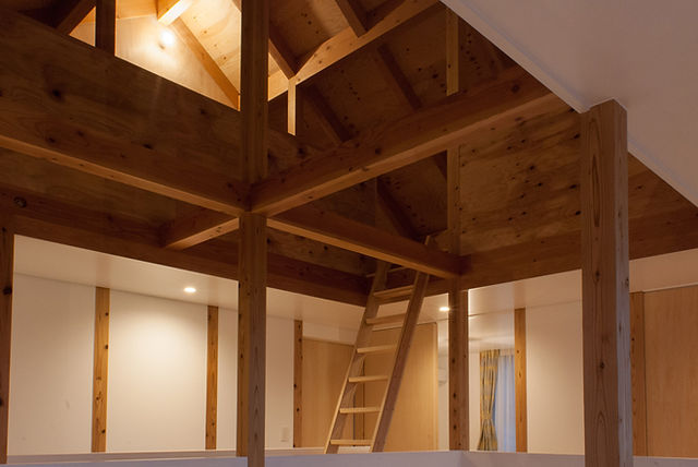 室町時代に確立された「九間」の基本に基づき、伝統的な日本家屋の美しさと機能性を現代的にアレンジ。住まいの内部は、シンプルで美しいグリッド構造を採用し、中心部には開放感あふれる吹き抜けを設け、高さ7.5mという圧倒的な空間の広がりを実現しています。この吹き抜けは、家族全員が集う中心となり、日常生活をより豊かにする場所です。