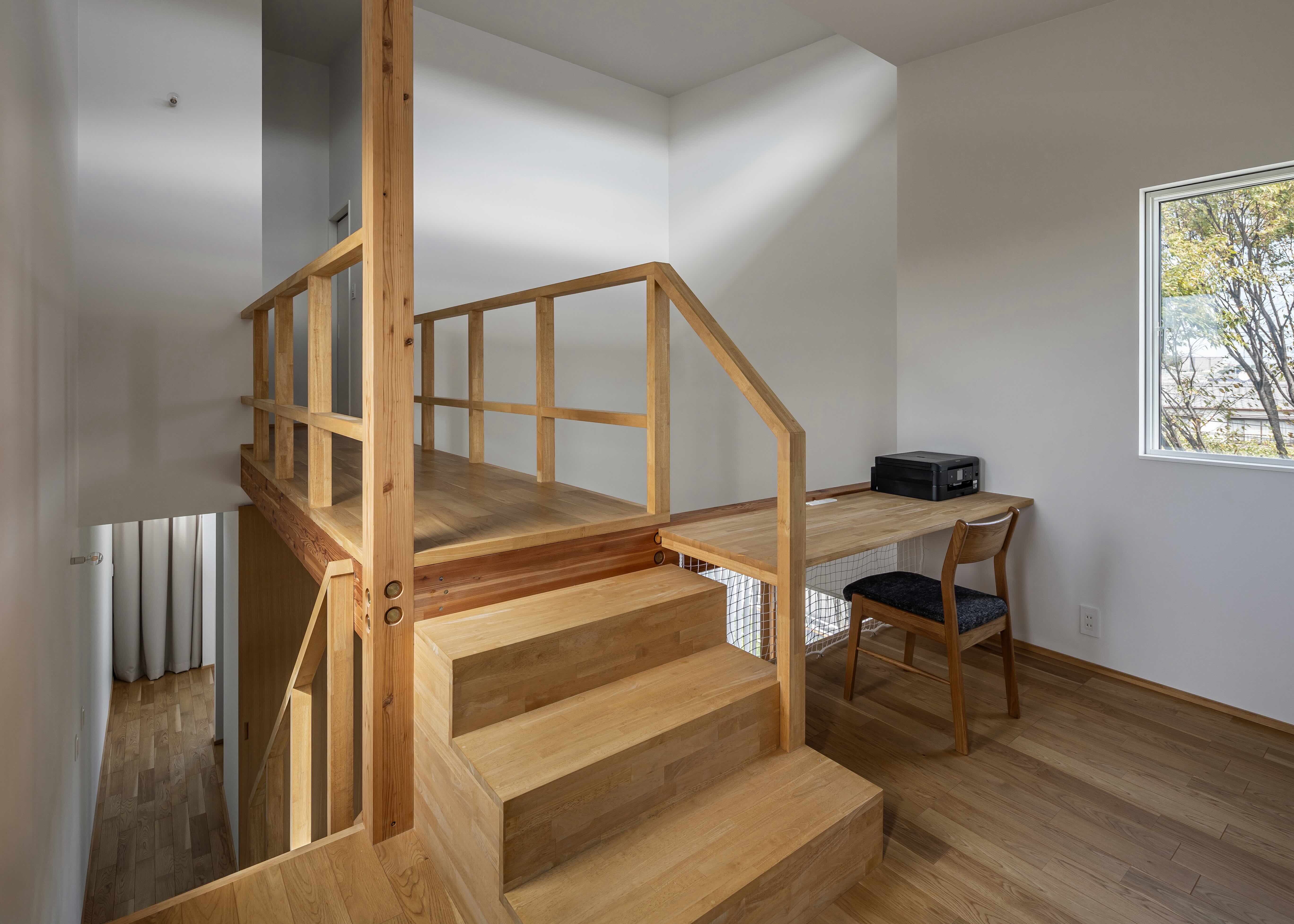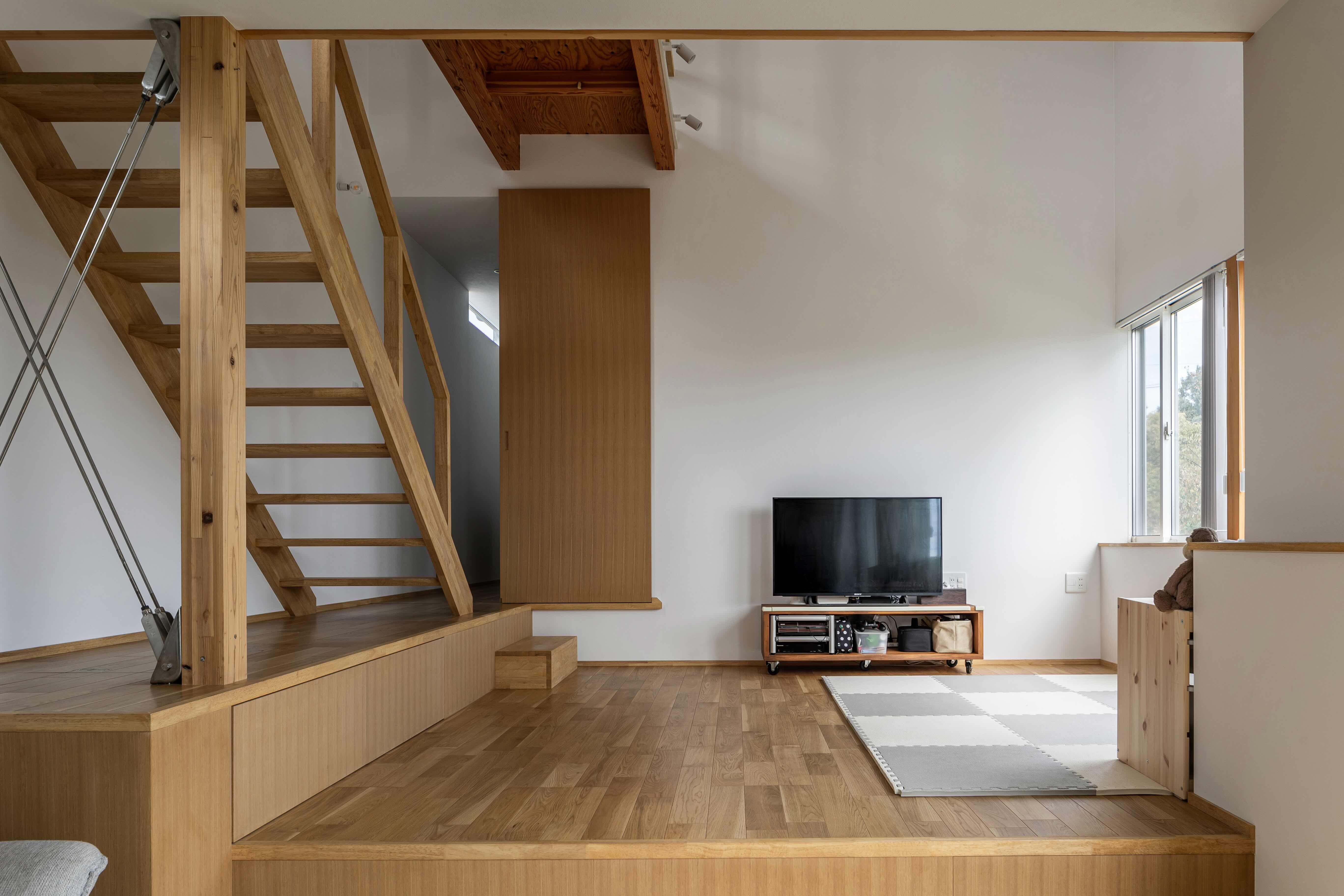 ステップフロアで繋がるゾーンは、家族が一緒に過ごしながらも、それぞれが自分の時間を楽しめるような、のびやかな暮らしを実現しました。