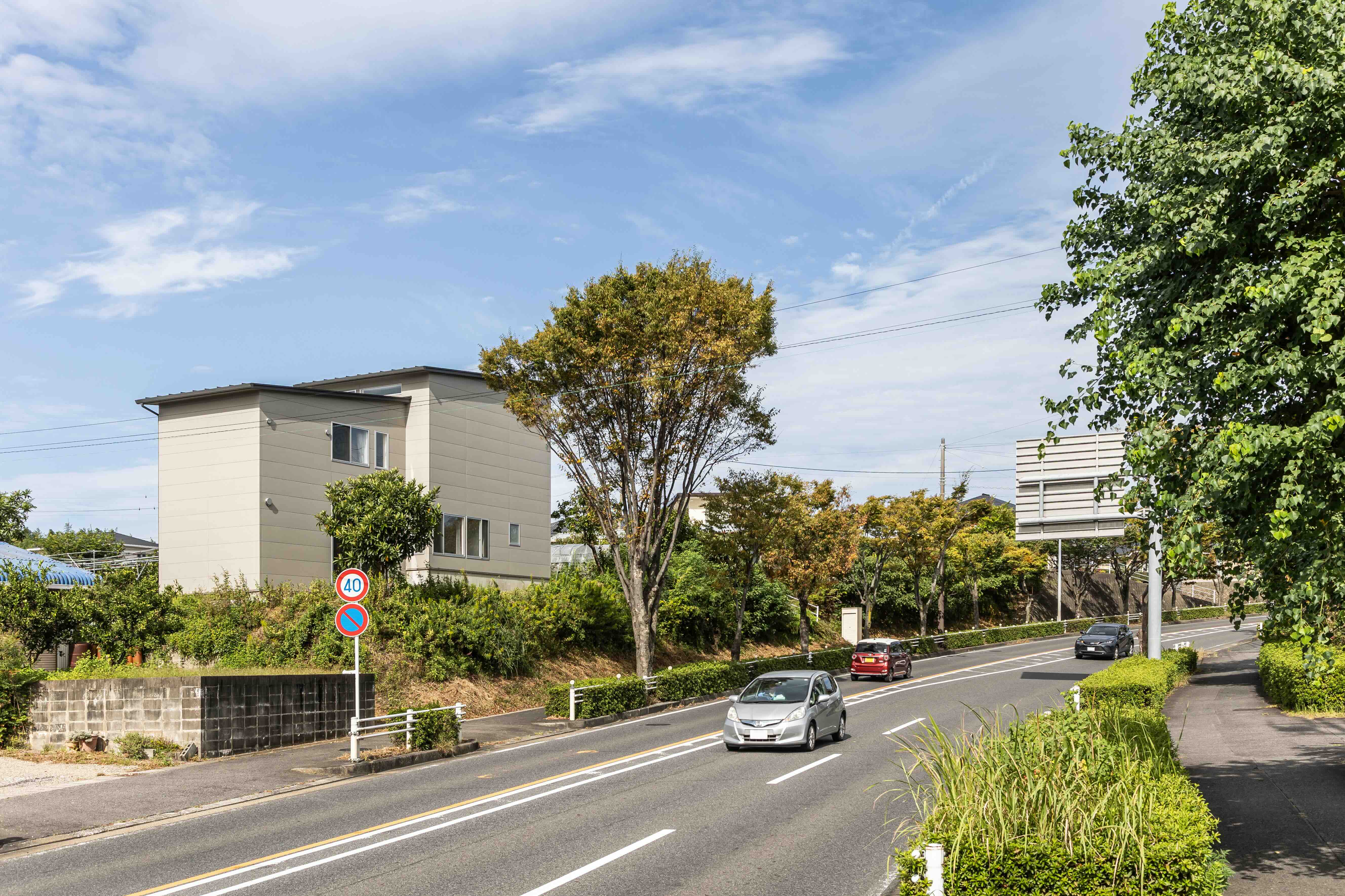 高台かつ幅が狭く縦長の変形地を最大限に活かした住まい。南面の傾斜に合わせて、1階のLDKは3つのゾーンに高さを分け、各ゾーンはステップフロアで繋がり、自然な流れを生み出しています。