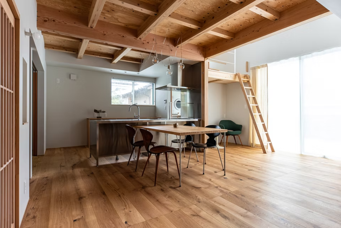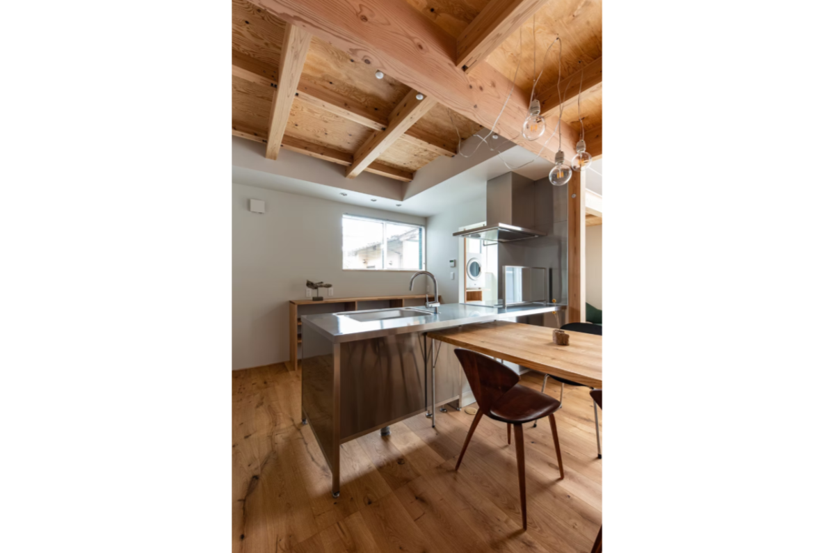 LDKでは構造の木材をそのまま見せるデザインを採用し、それぞれの場所の用途が見えるような木材選びをしました。