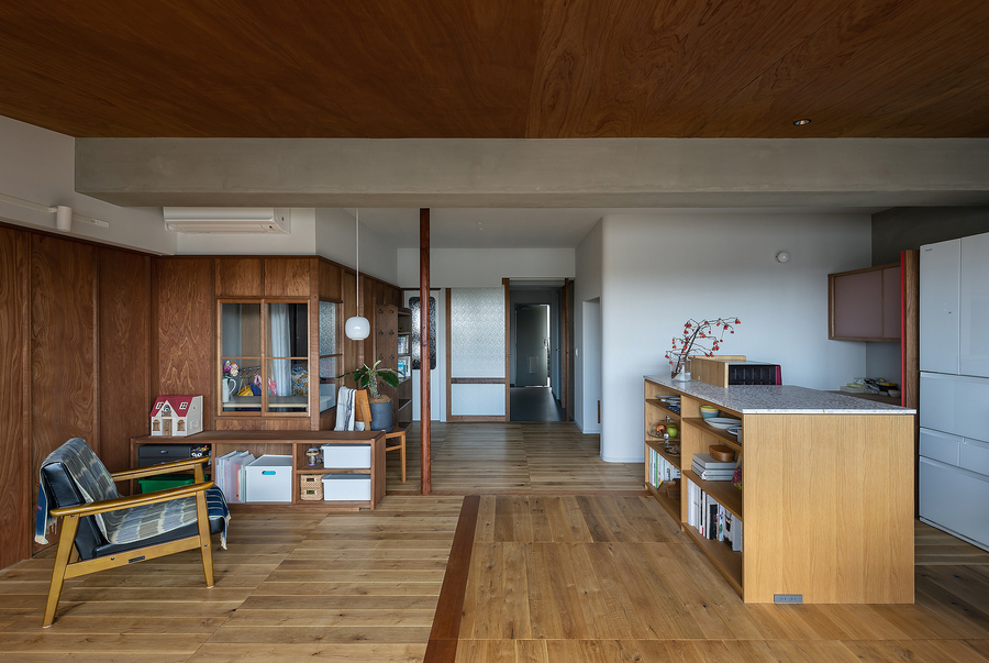 主室となるLDKは、リビングダイニングであり、子どもの遊び場であり、それぞれの居場所でもあります。限られた面積のなかで「どのように居場所をつくるか」…閉じた個室ではなく、小さな居場所がゆるやかにつながりながら一室空間を構成するアイデアが詰まっています。