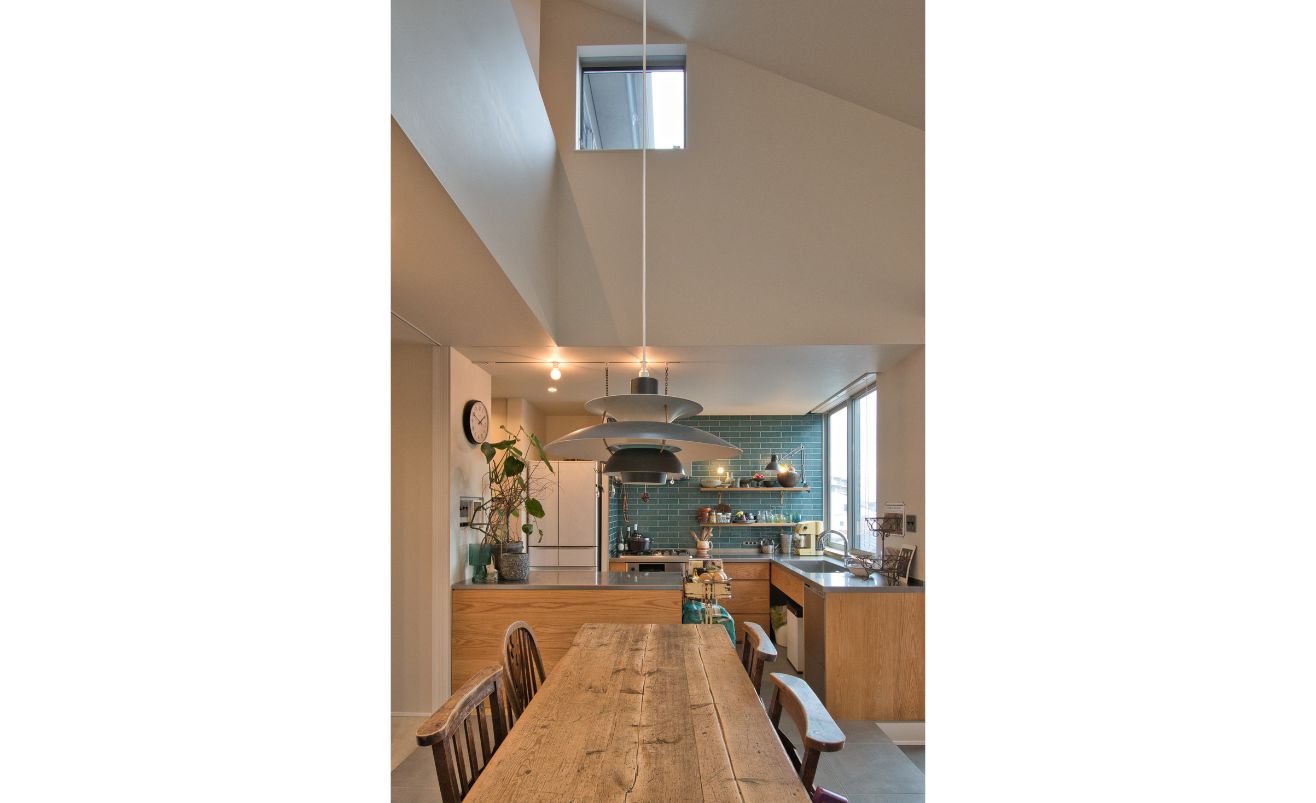 プロの住宅レシピ 隣家に囲まれた中でも天井高く、たっぷりと光を取り込むLDK