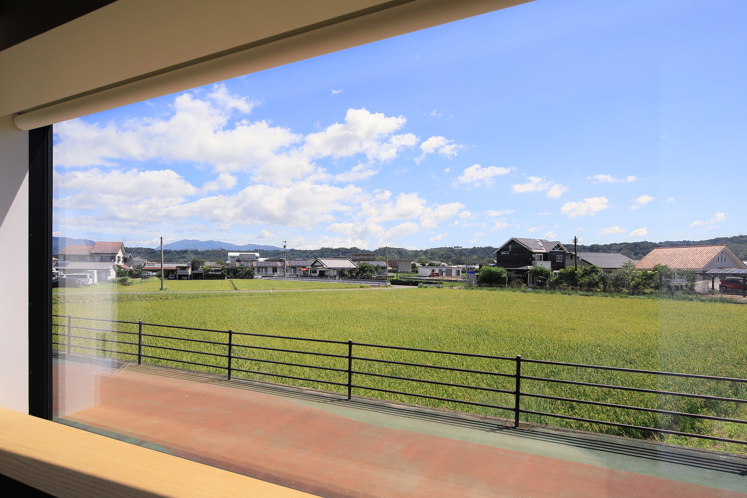 家族の将来を見据えた、シンプルで無理のないプラン。その中心には、リビングから望む穏やかな田園風景があります。