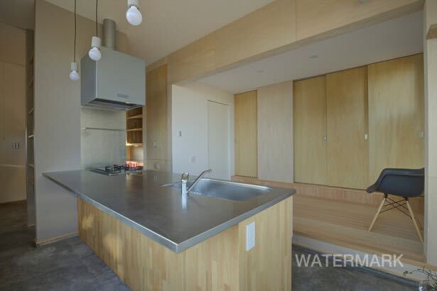 キッチンを中心に、親戚や友人を迎えて集う空間へとつながります。