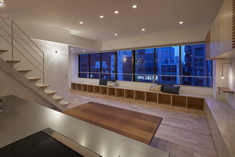 東京転勤を機に、元々ご実家のあった、都心ビルのメゾネット形式となった上部2層を改修して住まわれることに。