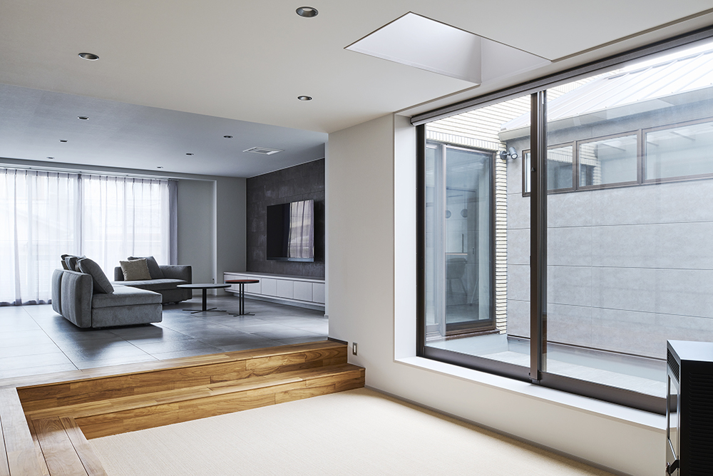 都心の真ん中で空を感じる、床座のリビングを考えました。