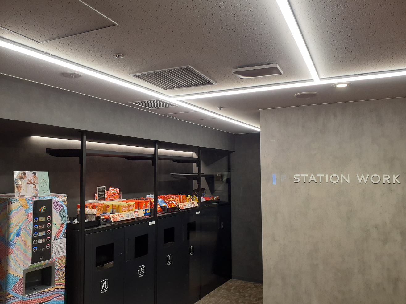 アイレベルが高いと開口部を隔てた向かい側のビルが視界に飛び込んできますが、ひとたび床に座ると、向かいのビルの先には青い空が広がります。