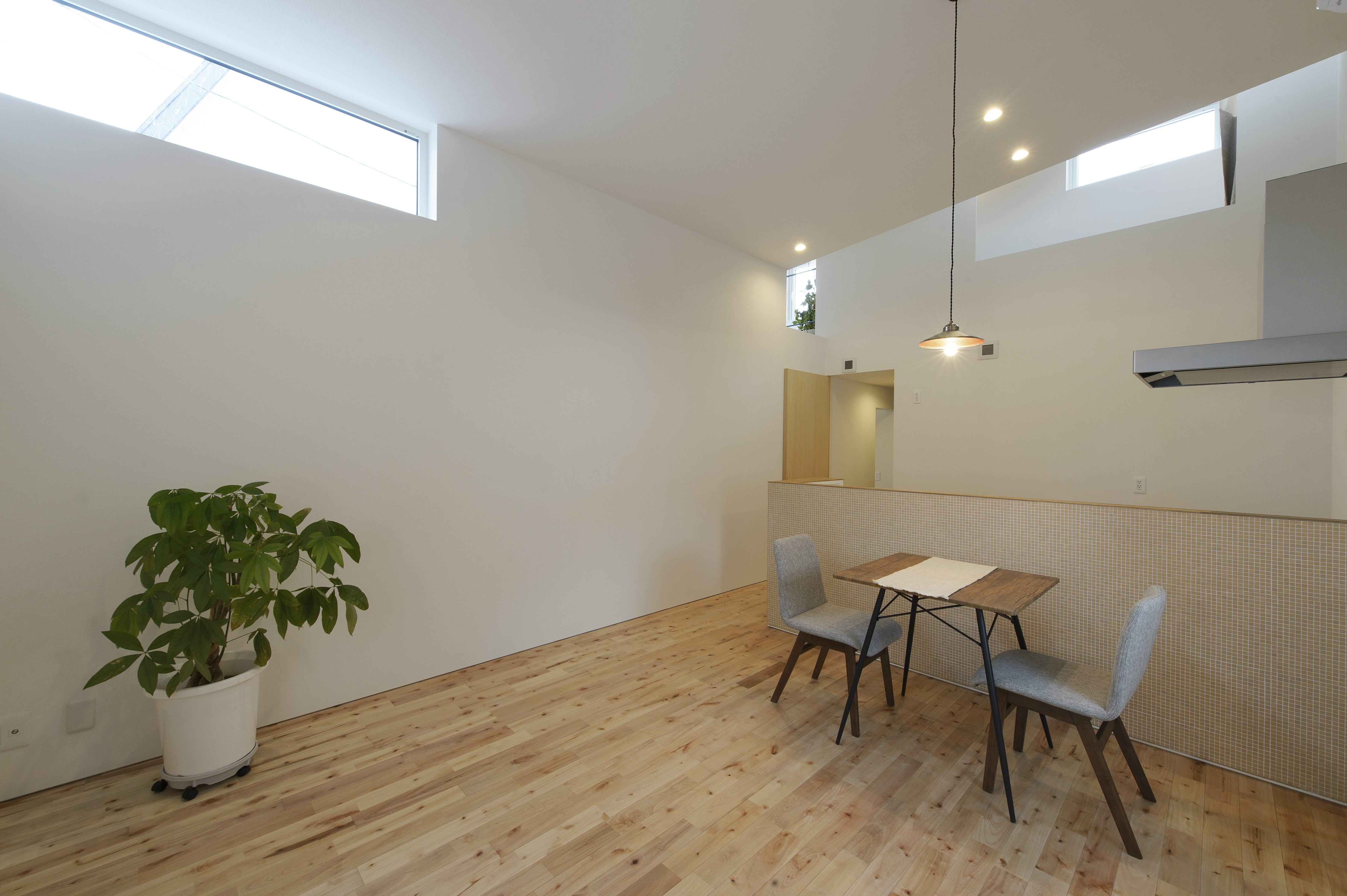 敷地の奥に建物を配置し、道路側にはリビングなどのパブリック空間、奥には寝室などの静かなプライベート空間を計画。T字型の特徴的なプランにより空間が緩やかにつながり、生活のリズムに奥行きとゆとりをもたらします。中央には仕事や趣味に使える独立した空間を設け、ライフスタイルに合わせて対応できるスペースに。