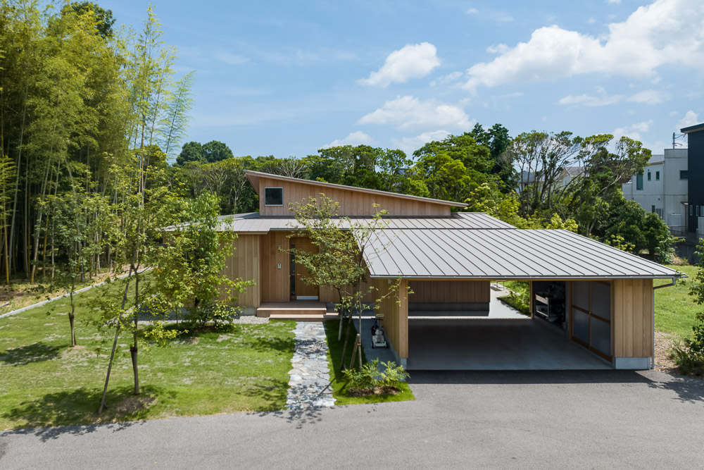 北側には竹藪がそよぎ、東側には歴史ある史跡が佇む。そんな自然と文化が息づく土地に、風景と呼応するような住まいが生まれました。