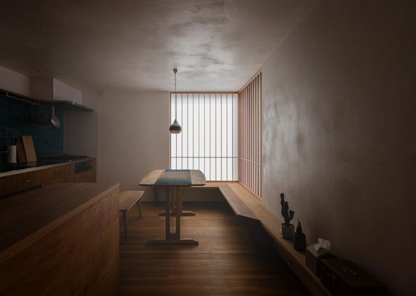 モールテックス仕上げの壁・床・天井が、ほどよくラフな質感を生み出し、空間に静かな表情を添えます。