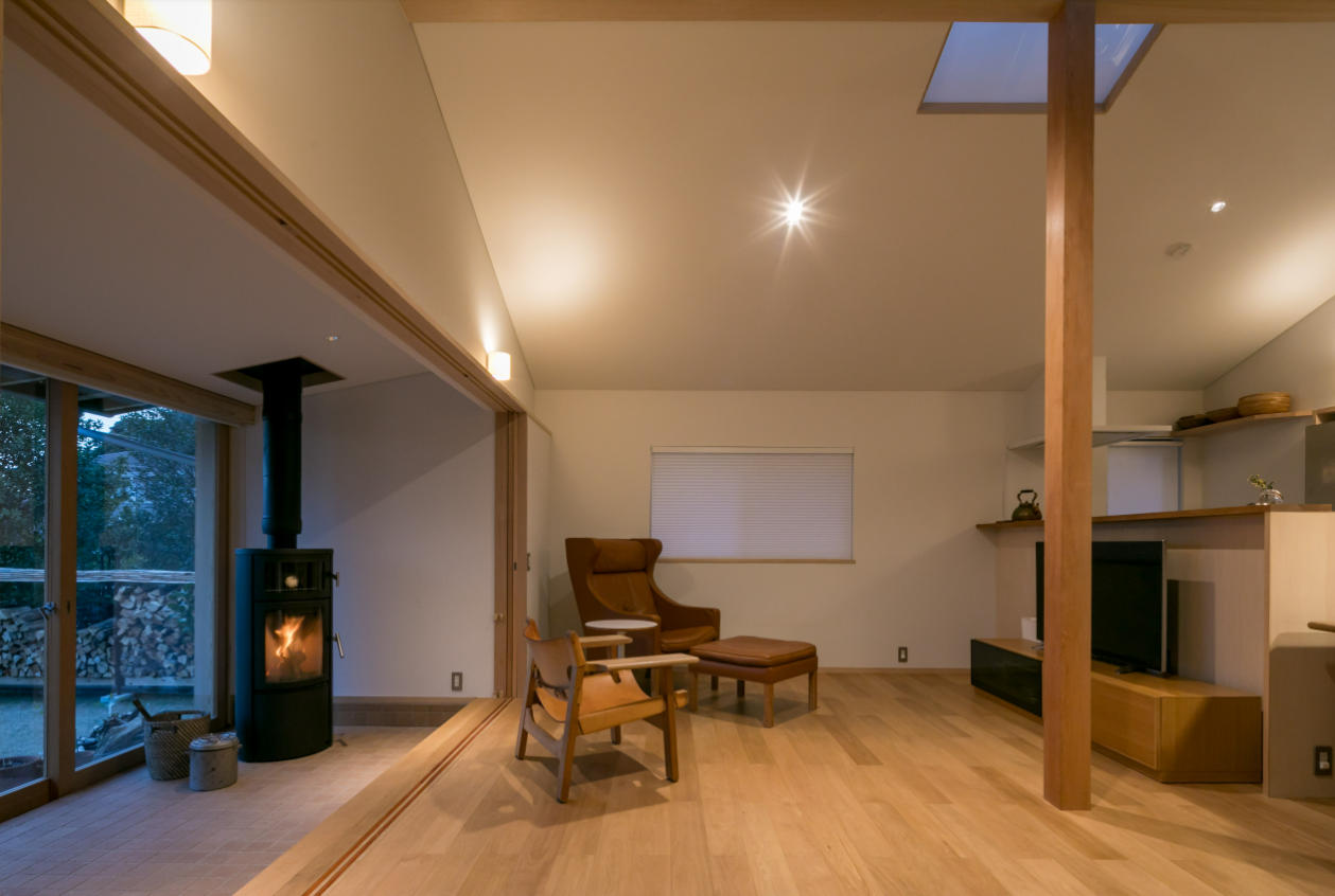 土間に面して畳のお茶の間があった昔の民家の空気感や良さを引き継ぎ、現代の暮らしに合うかたちで取り入れました。玄関すぐに設けた畳の和室は、来客がちょっと腰をかけて話をするのにちょうどよく、引き戸や障子を開けば土間とリビングがひとつながりの大空間に。閉じれば、こもり感のある落ち着いた部屋になります。