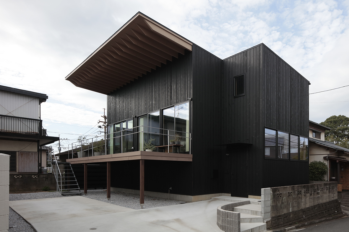 プロの住宅レシピ リビング前の駐車場は高い壁で目隠し