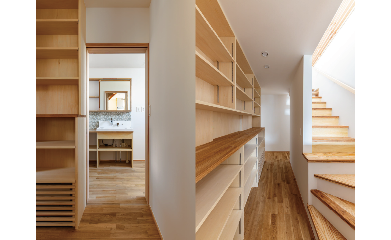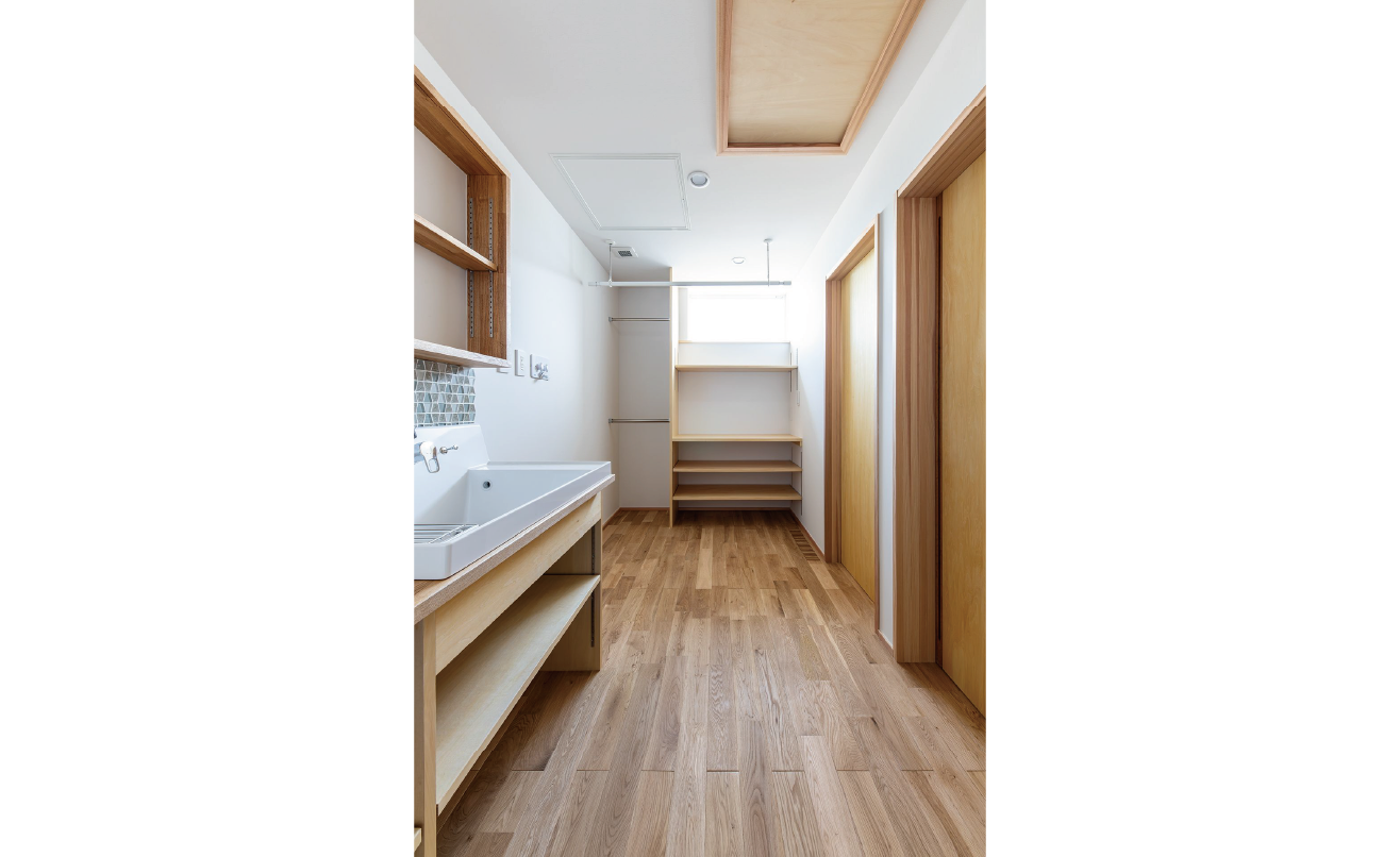 このプランで注意したいポイントは、ゲストに使ってもらうとき、かならず洗面室に案内しなければならないこと。特に脱衣室を兼ねた洗面室の場合は、生活感の伝わりやすい洗濯物などがゲストの目にふれることもあります。
