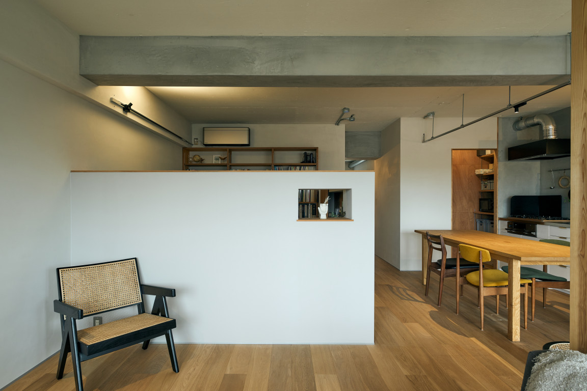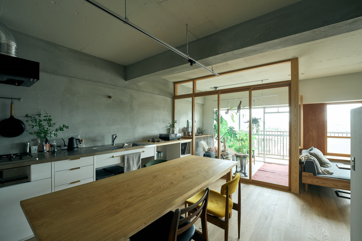 築38年のマンションの一室をフルリノベーションし、閉ざされた印象の空間を、光と抜け感のある開放的な住まいへと生まれ変わらせました。