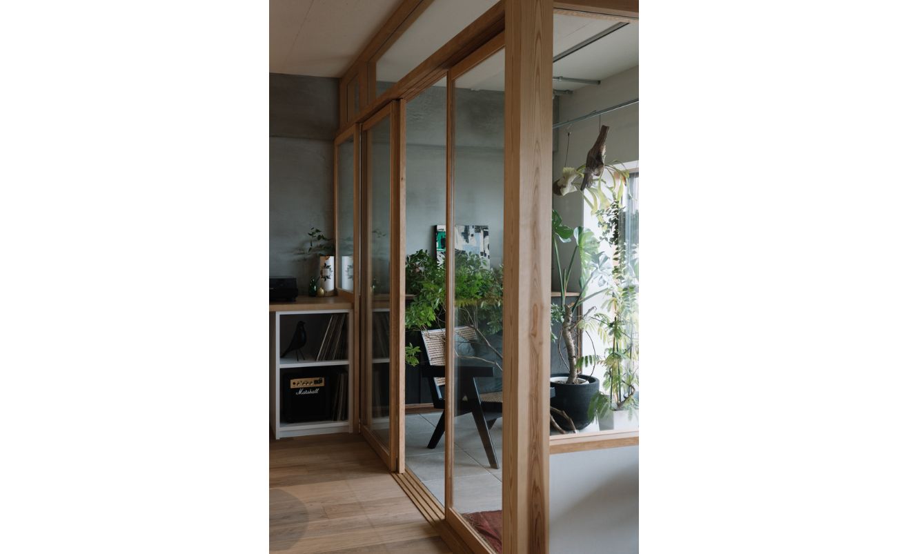 リビングとつながるサンルームは、光を柔らかく取り込みながら外との境界を曖昧にし、温熱環境や視線のバッファとしても機能。