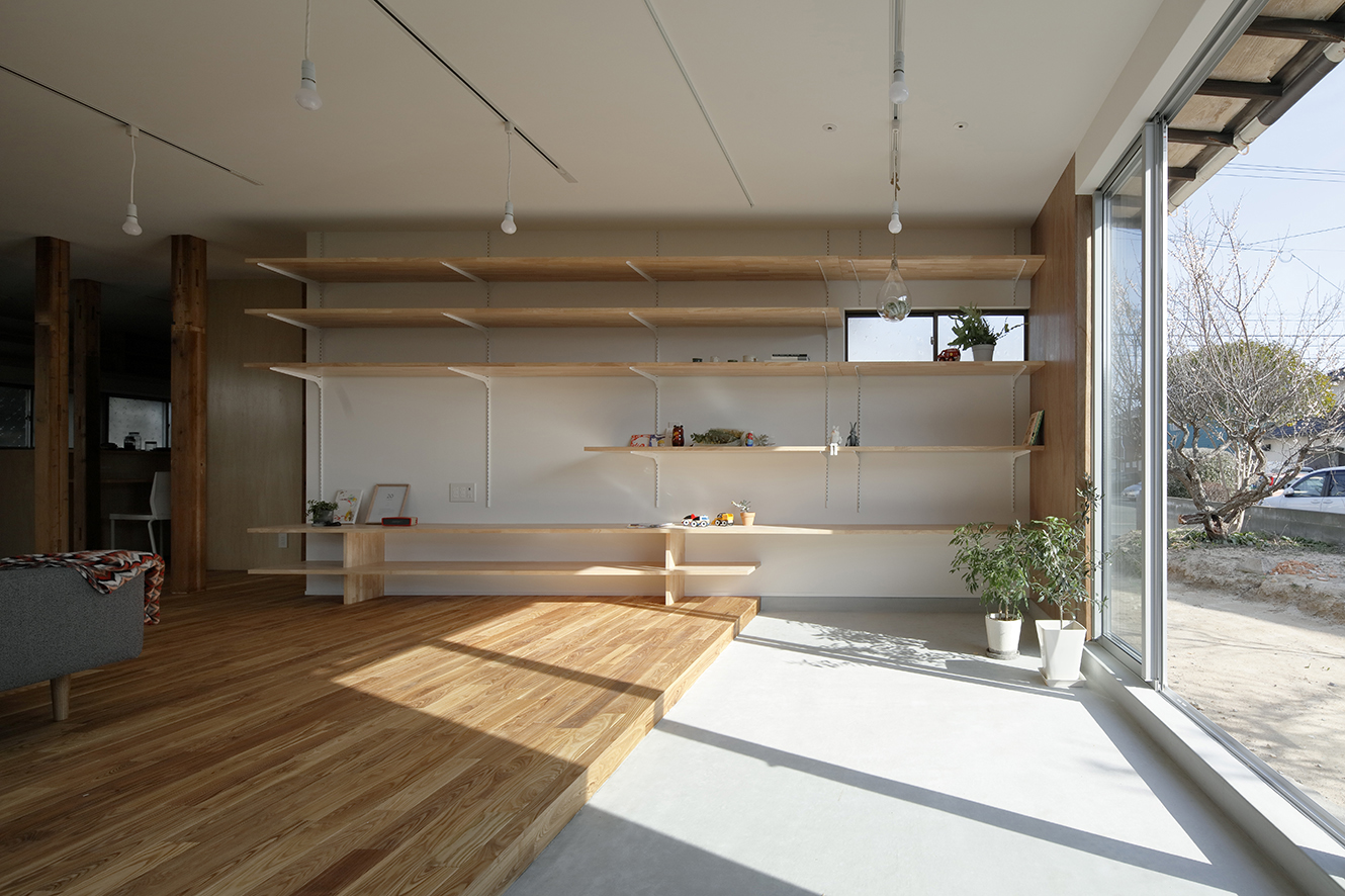 もともと縁側だった場所は、L字型の土間へと変更。庭とのつながりを生かし、子どもたちが遊んだり、洗濯物を干したり、家庭菜園の準備をしたりと、自由に使える多目的な空間になっています。