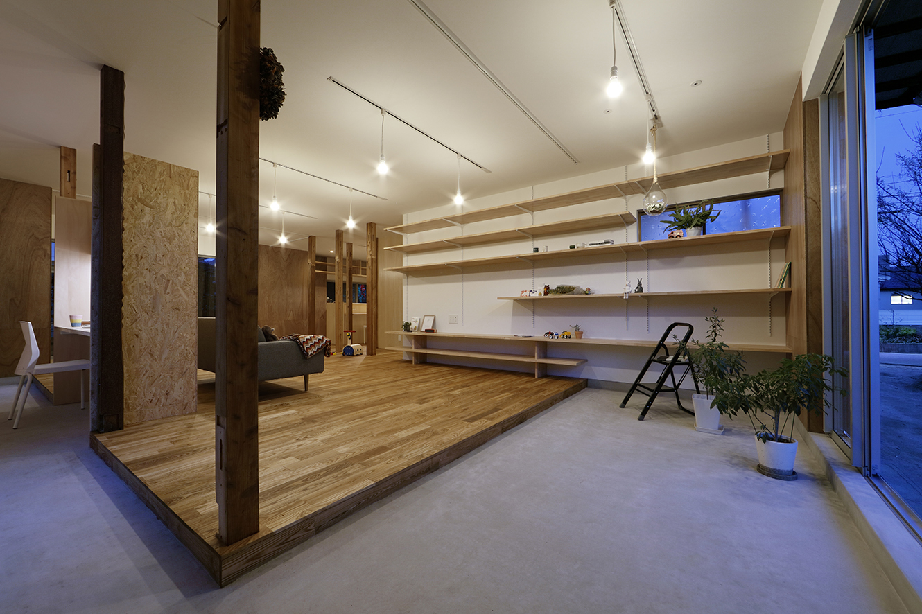 この土間の延長には、ご主人のためのオープンなワークスペースも設けました。「個室まではいらないけれど、自分の作業ができる場所が欲しい」という希望に応えたもので、家族とのつながりを保ちながらも、ほどよく集中できる居場所となっています。
