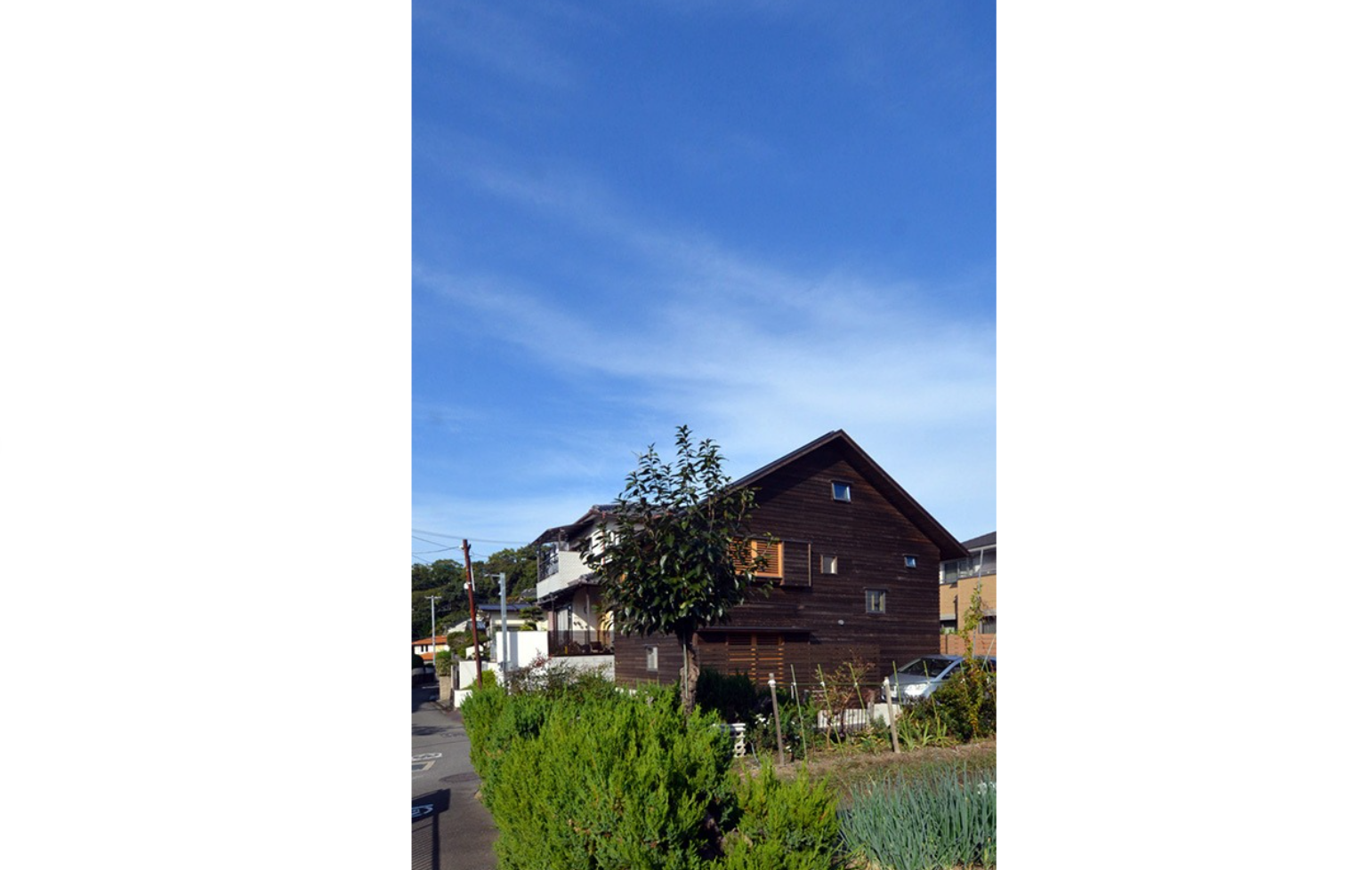 この住まいの外壁には、杉の下見板張りを採用しています。