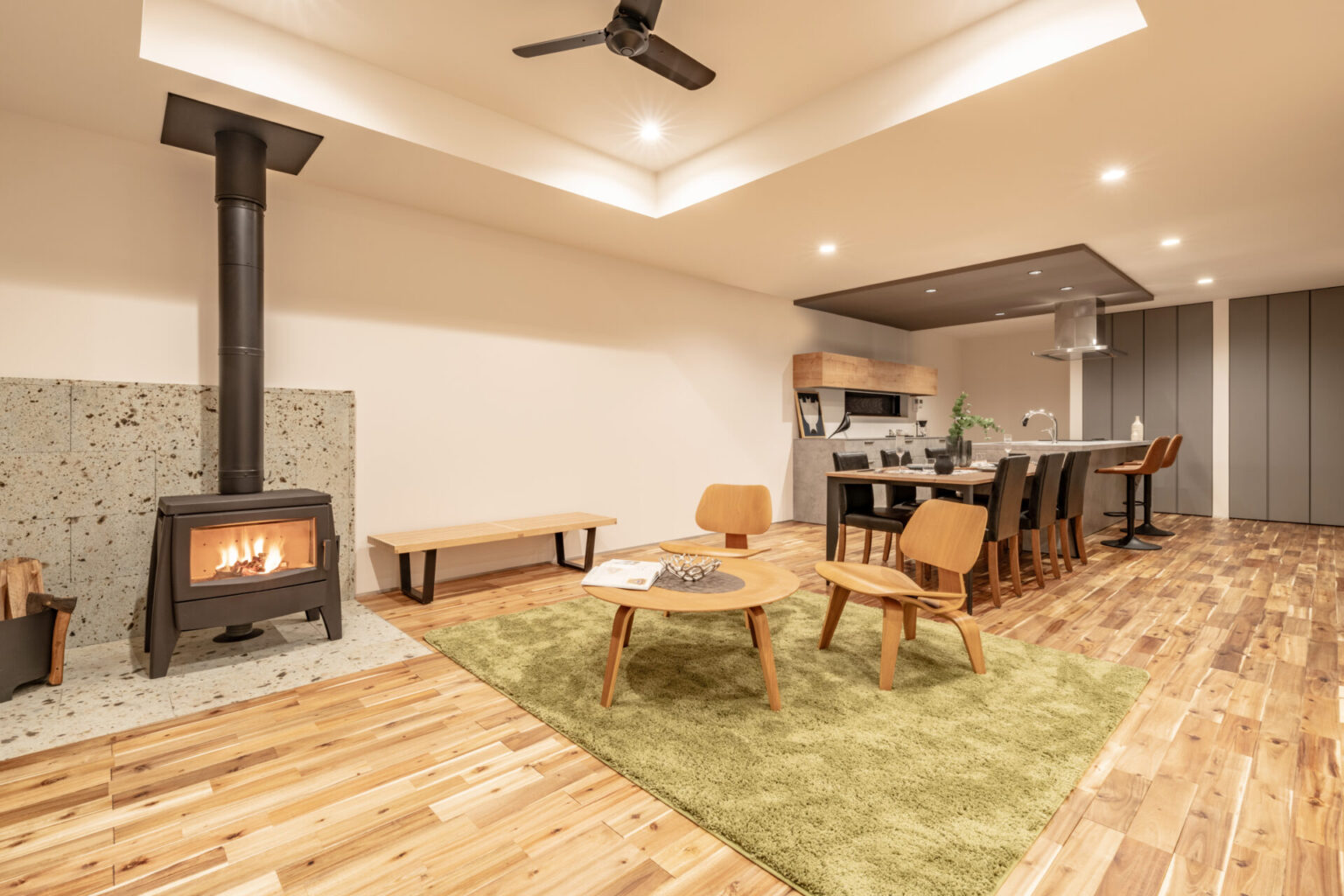 この家づくりは、ご主人の「バイクを楽しめるガレージがほしい」という希望と、奥様の「外からの視線を気にせず過ごしたい」という要望から始まりました。さらに、お子様の「ゲーム専用の部屋がほしい」との希望も合わさり、中庭を囲むロの字型のスキップフロアの住まいをご提案しました。