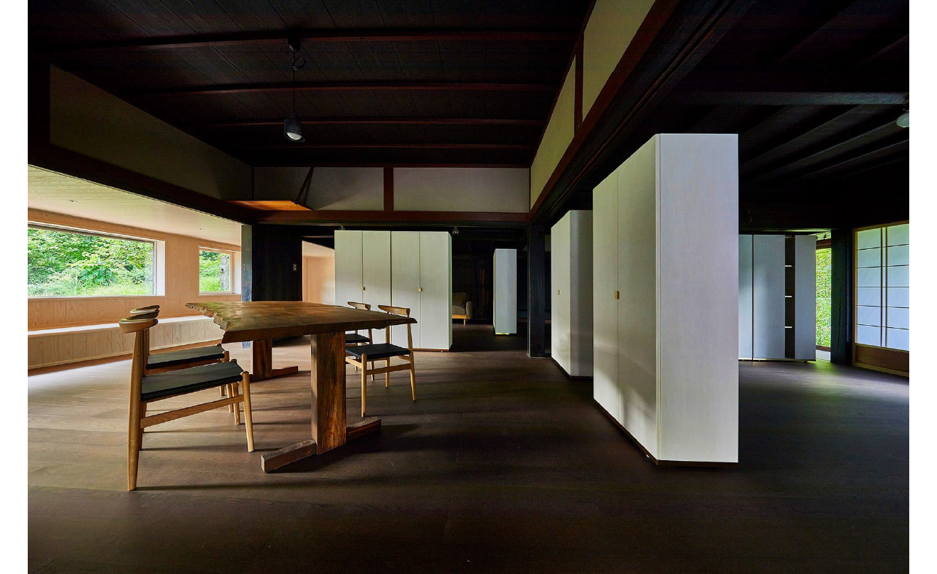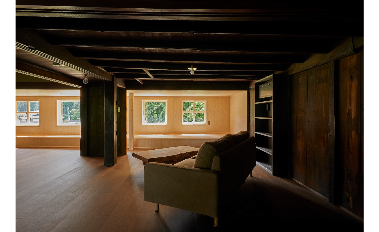 内部は、田の字型に並んでいた畳の間を取り払い、大きなひと続きの広間へと再構成。