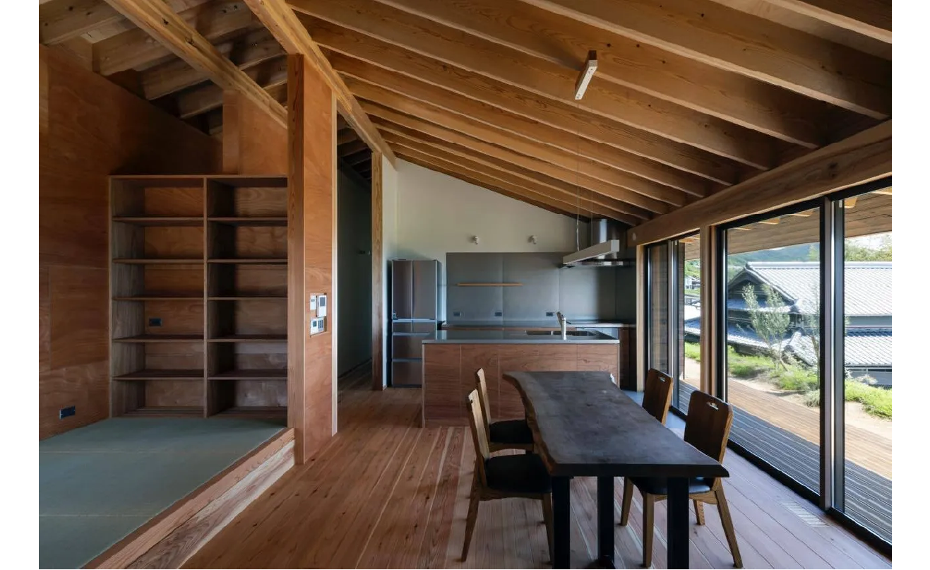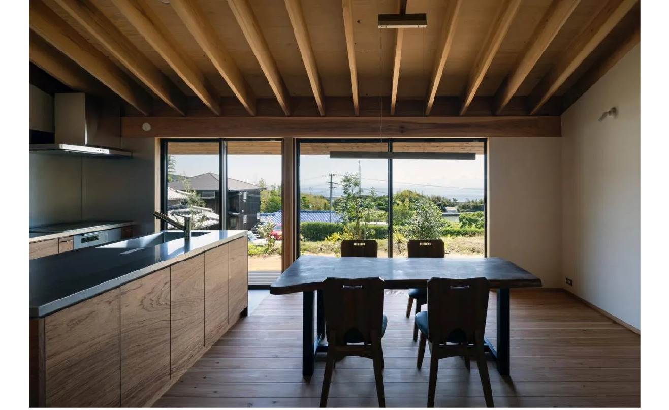 設計の根幹には「時間の経過が美しさになる素材選び」と「環境との呼応」があります。日々の暮らしが積み重なることで、風景と家が共に変化し、ひとつの調和をかたちづくっていく──そんな在り方が丁寧に編まれている住宅です。