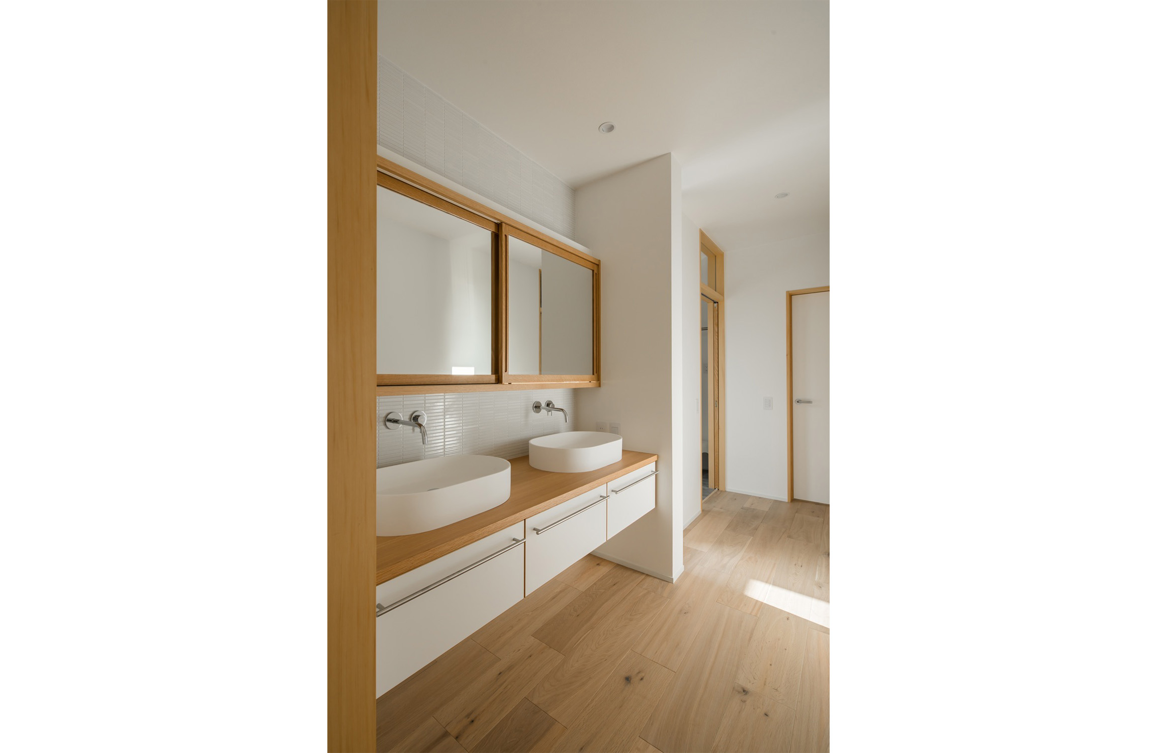 プロの住宅レシピ 廊下に配置したダブルボウルの洗面台